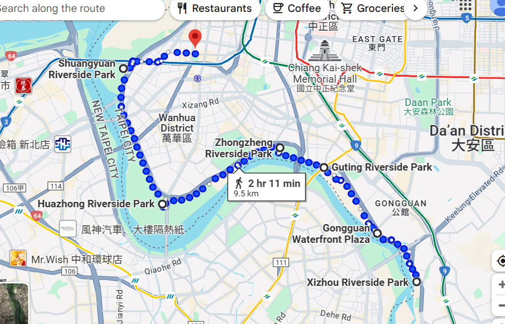 Highway veered to the right after Yongfu Bridge, and from Guting Park the walk was green and peaceful.