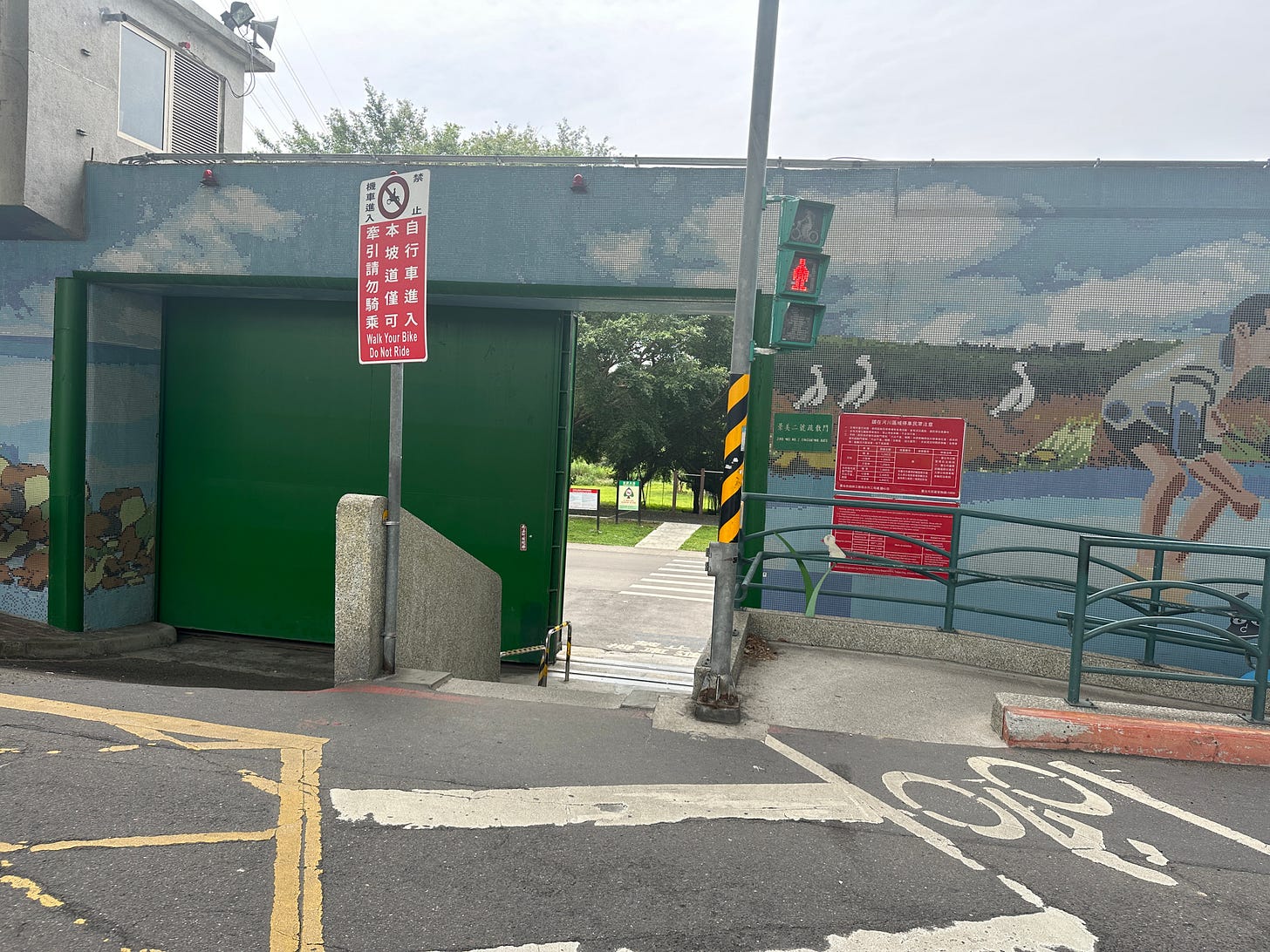 I was already convinced that this road is entirely designed for the cyclists only, the map reinforcing this opinion, but finally after Zhongzheng Bridge I spotted a sign for the pedestrians too.