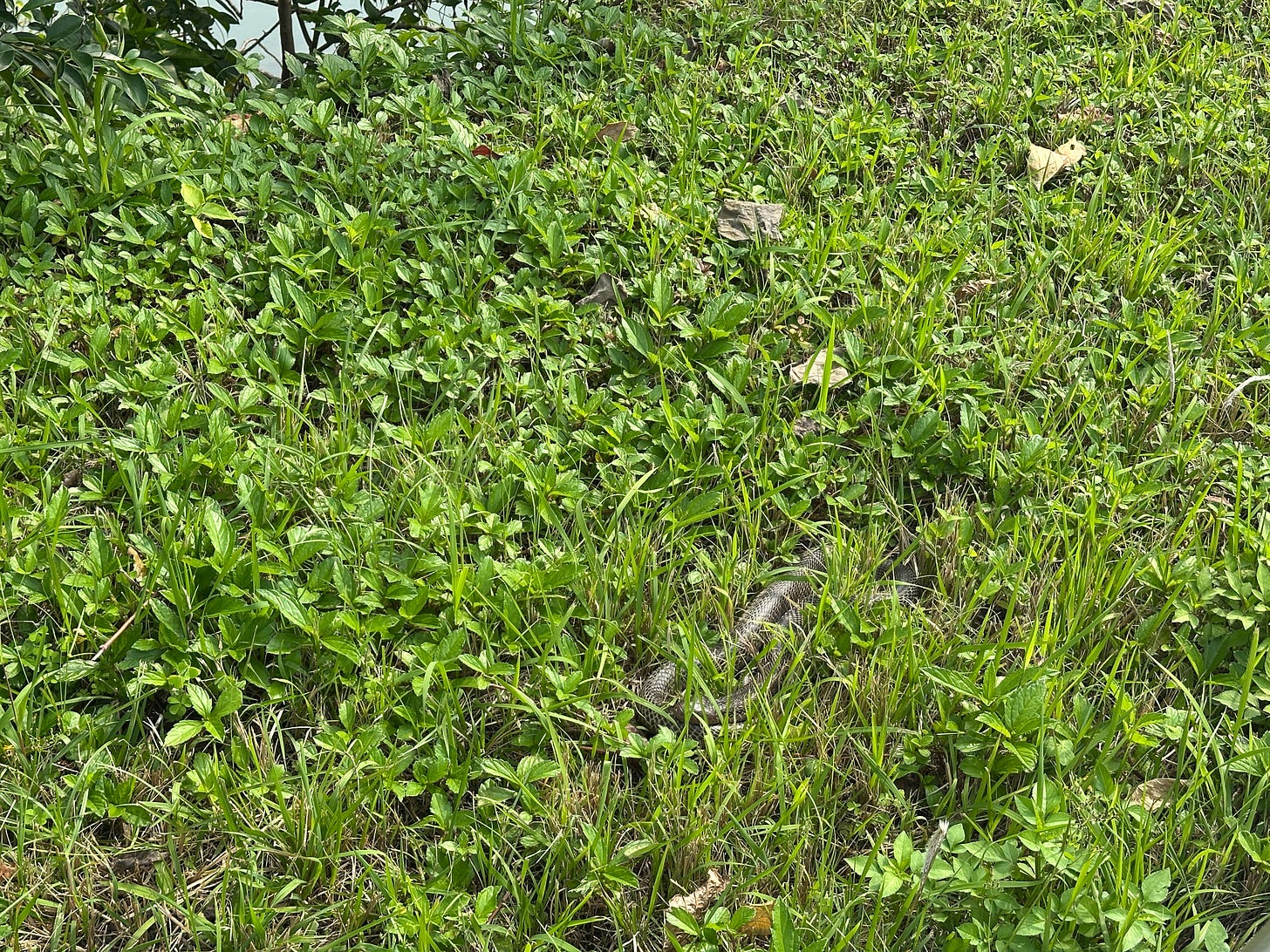 Finally, I see it. A snake taking a sun bath. I Google the name “cobra” in Chinese and show to the man, he nods. Not sure, if he is right, but I decided to avoid walking on the grass that day.